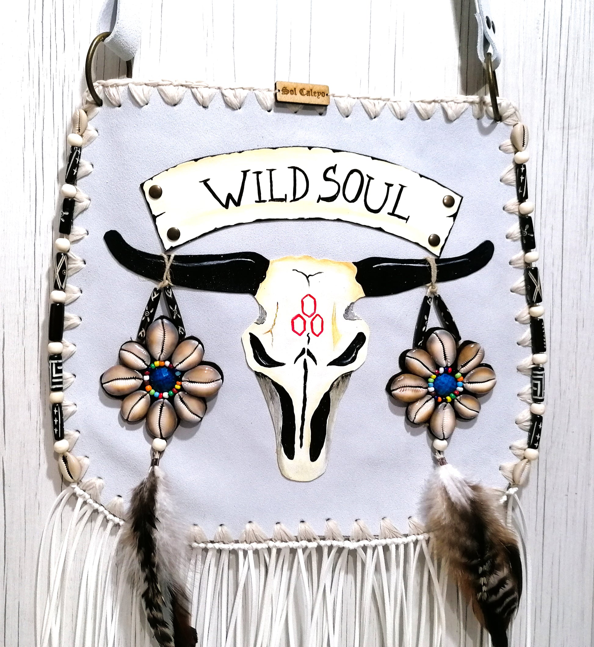 Elevate your bohemian style with this exquisite handmade suede leather bag, featuring a stunning buffalo head design that is hand-painted and intricately embroidered. Every detail is crafted by hand, ensuring a one-of-a-kind piece.