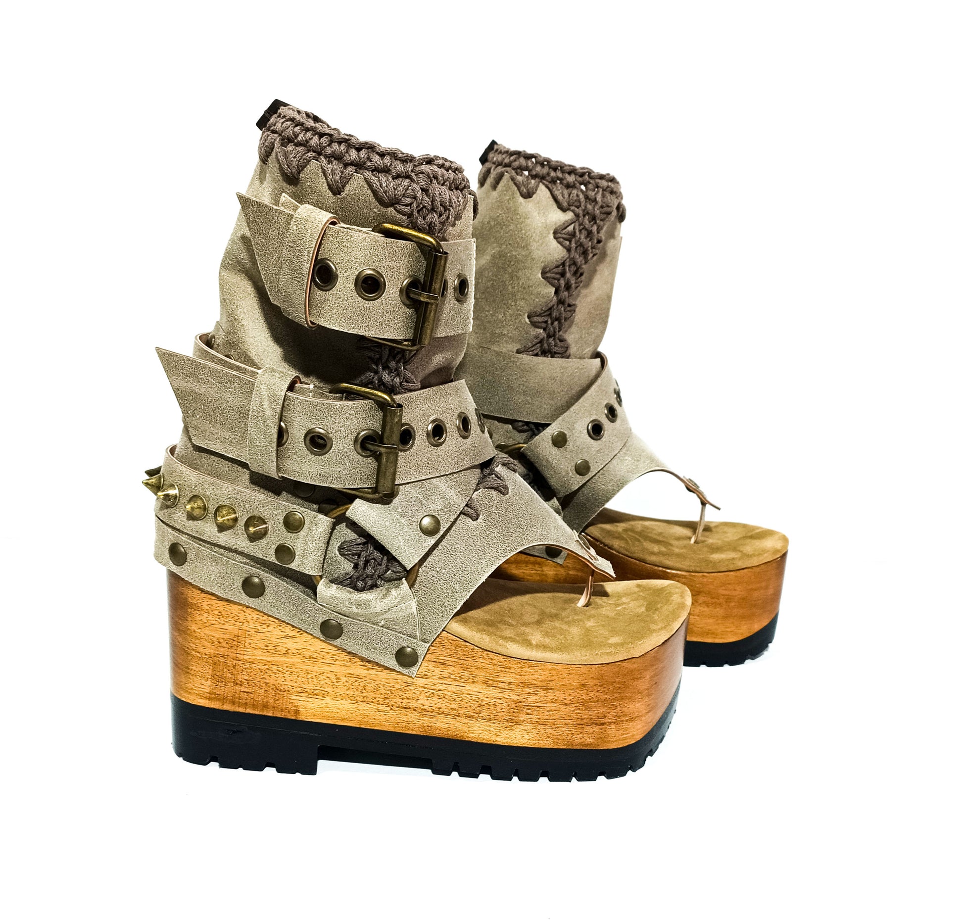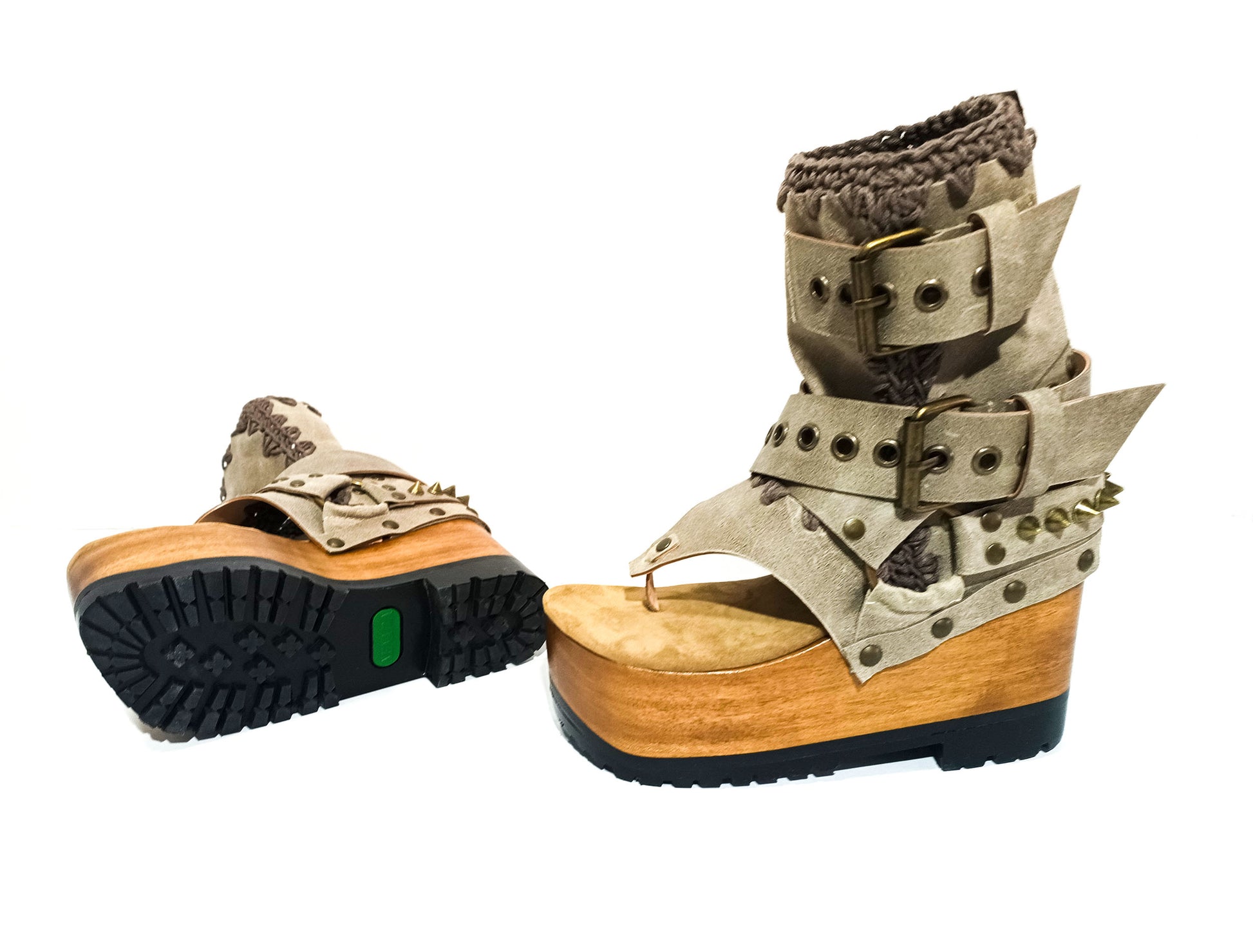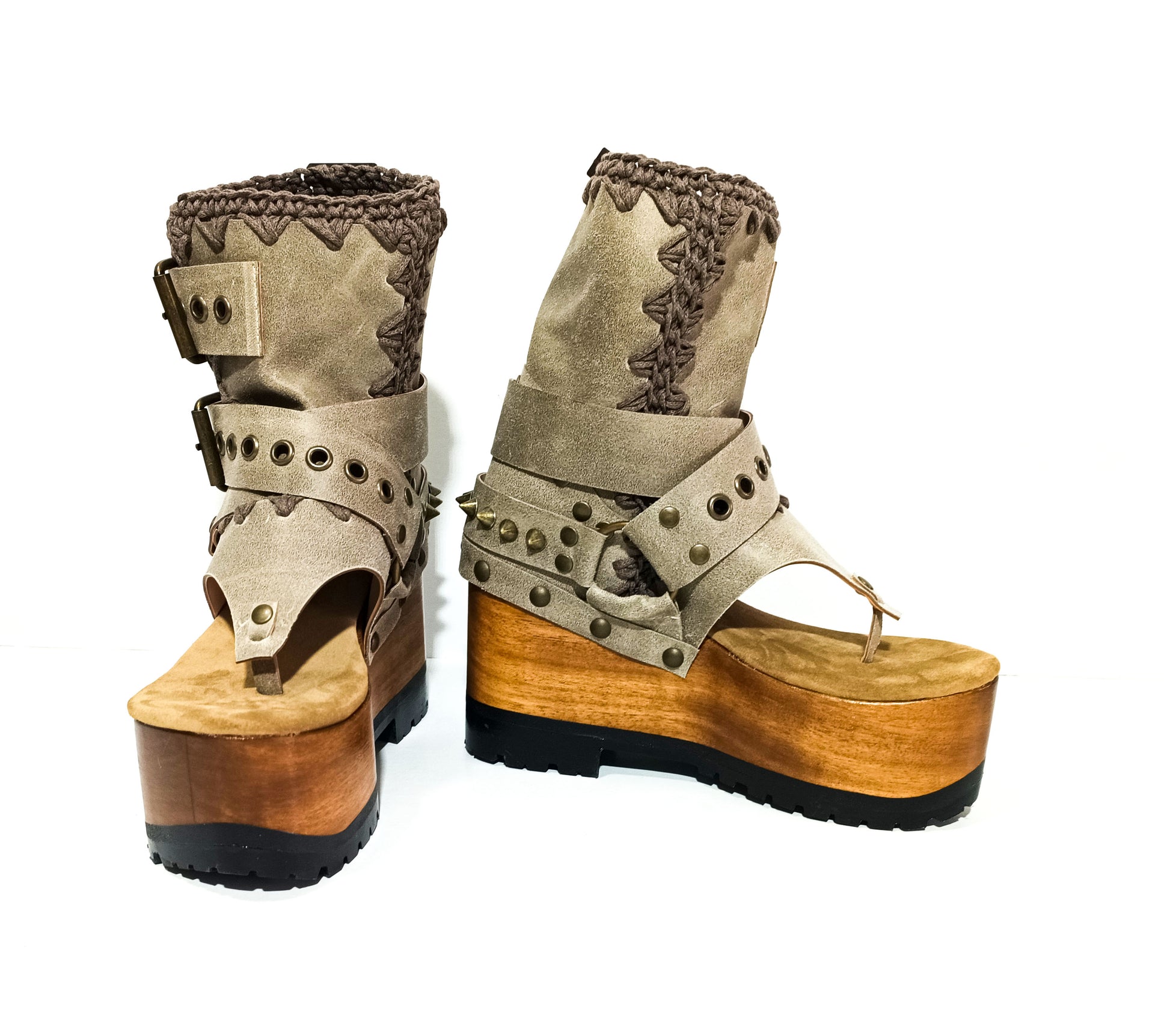 Style: flip flop style platform sandals, meticulously crafted in genuine handmade stone coloured waxed leather.