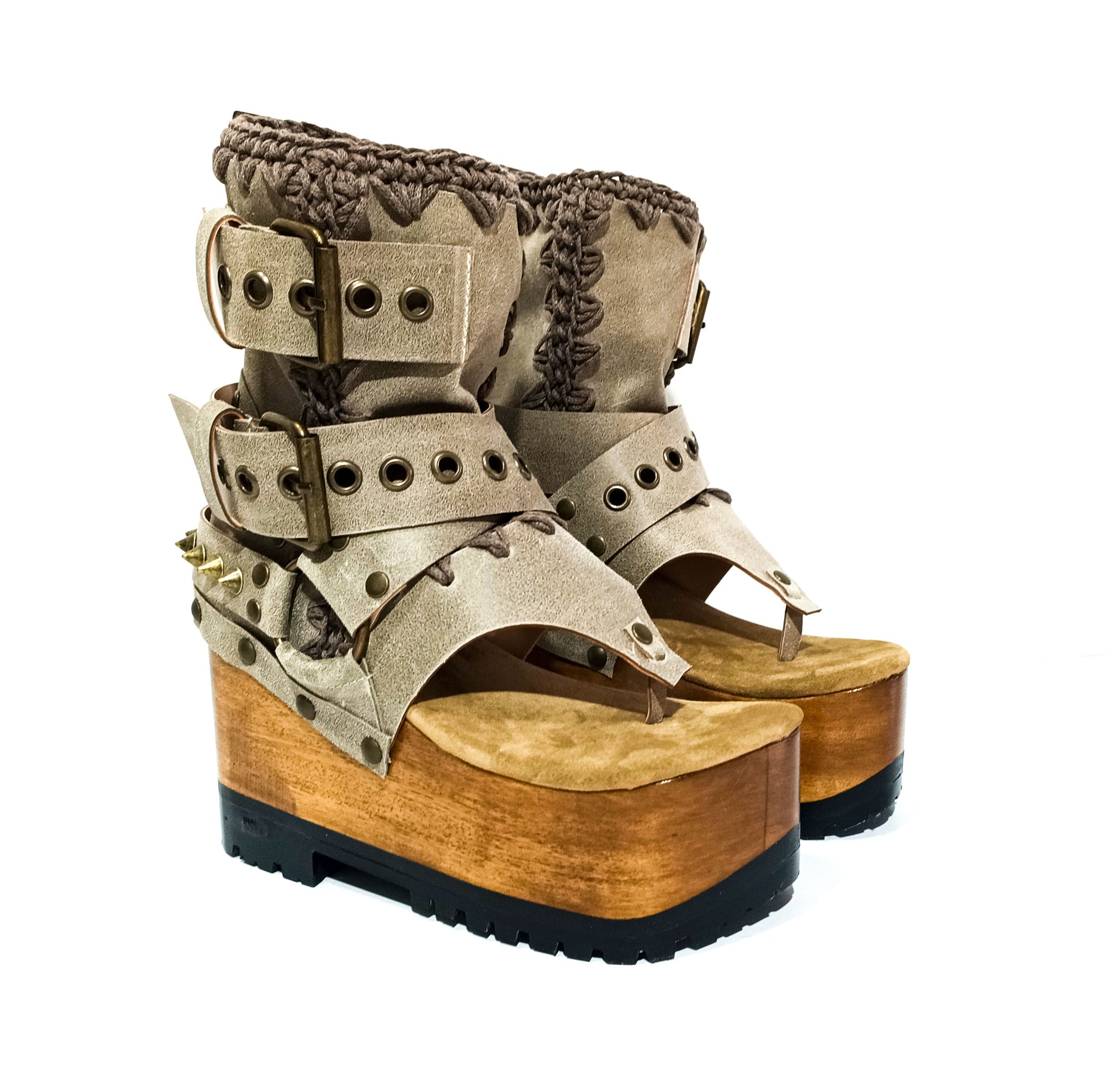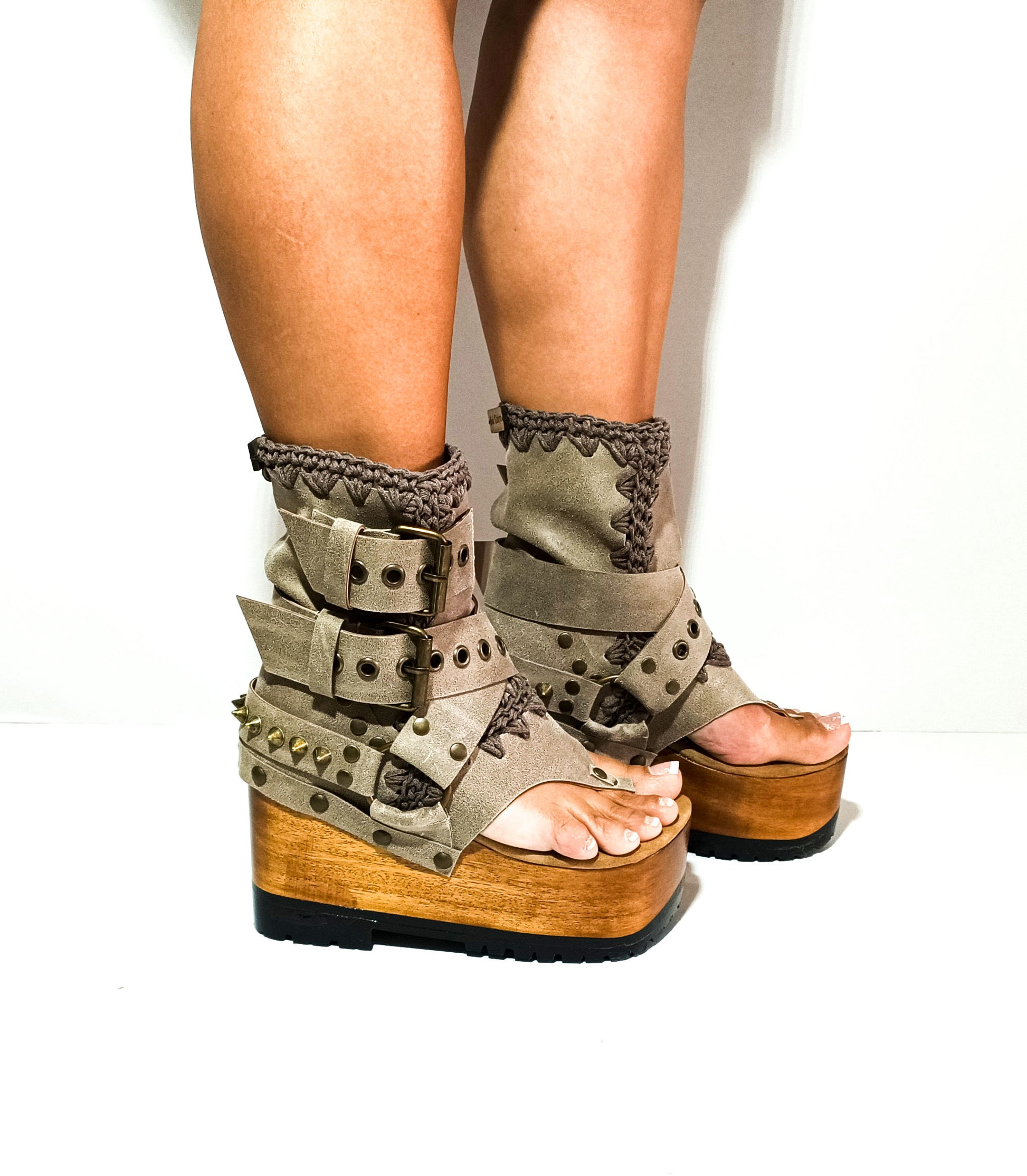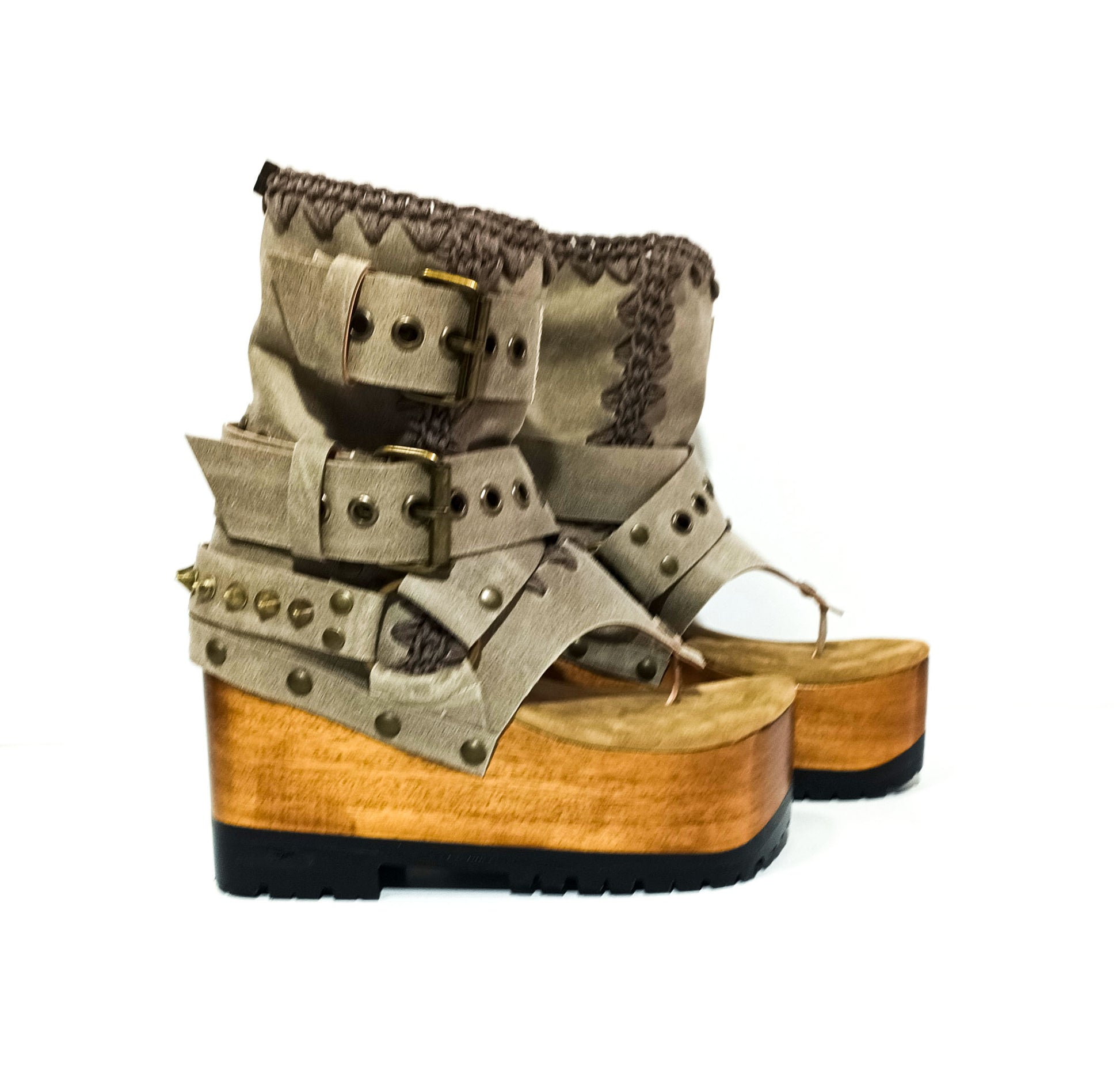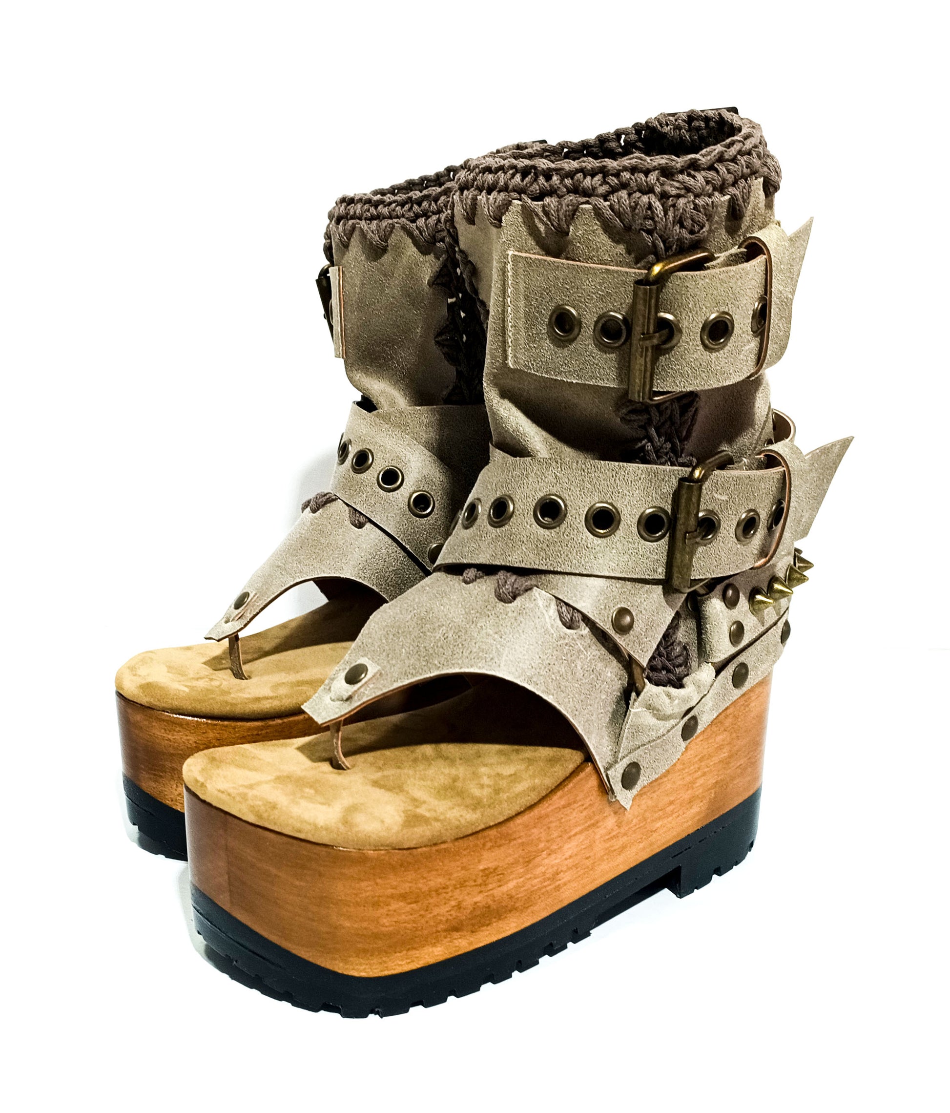 Style: flip flop style platform sandals, meticulously crafted in genuine handmade stone coloured waxed leather.