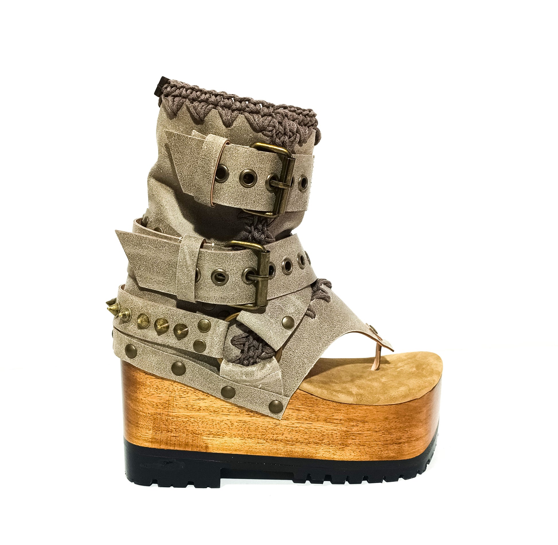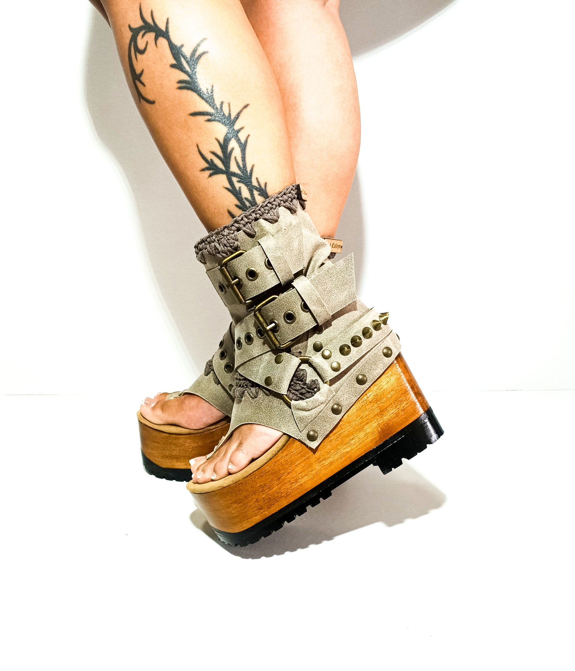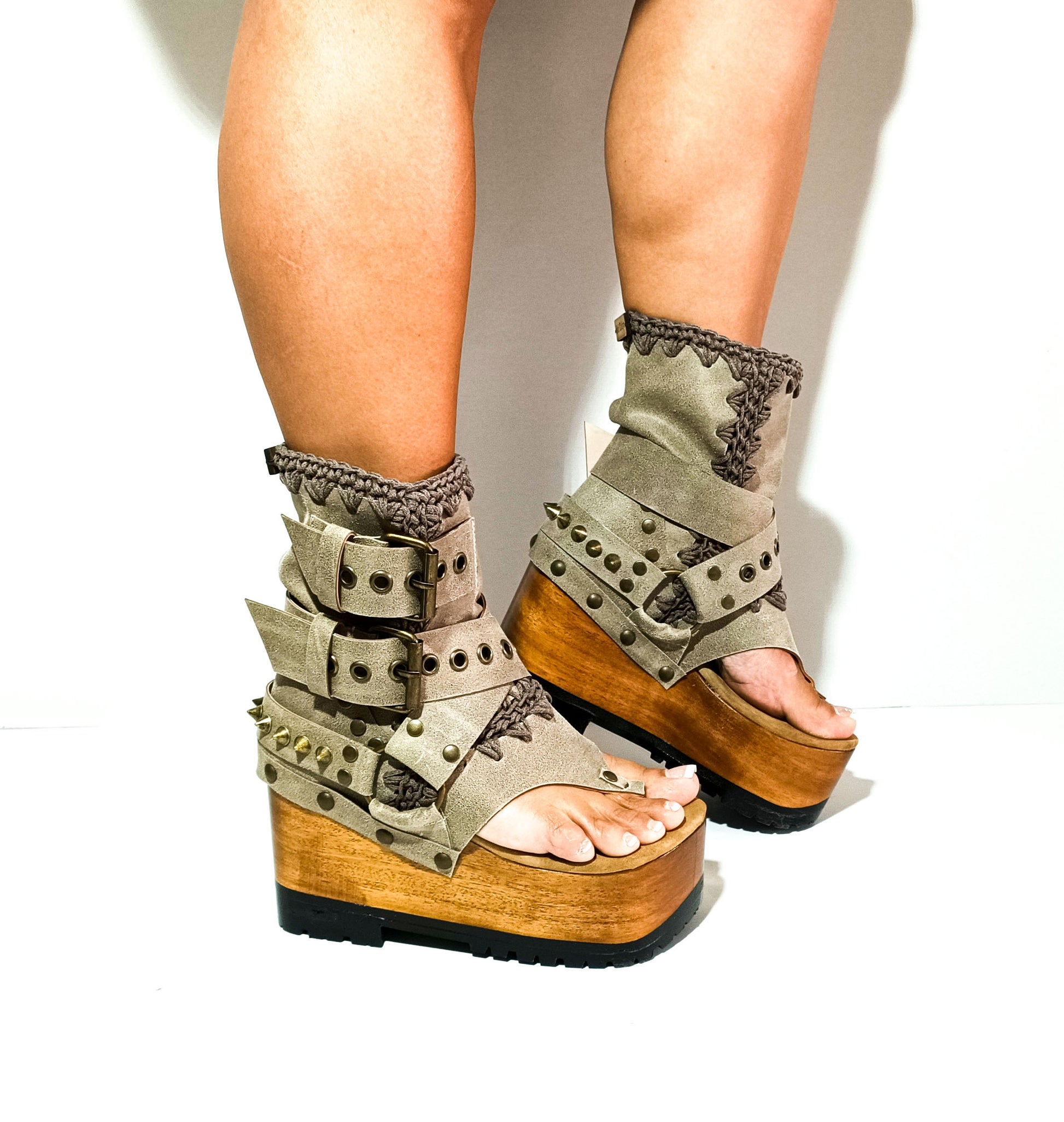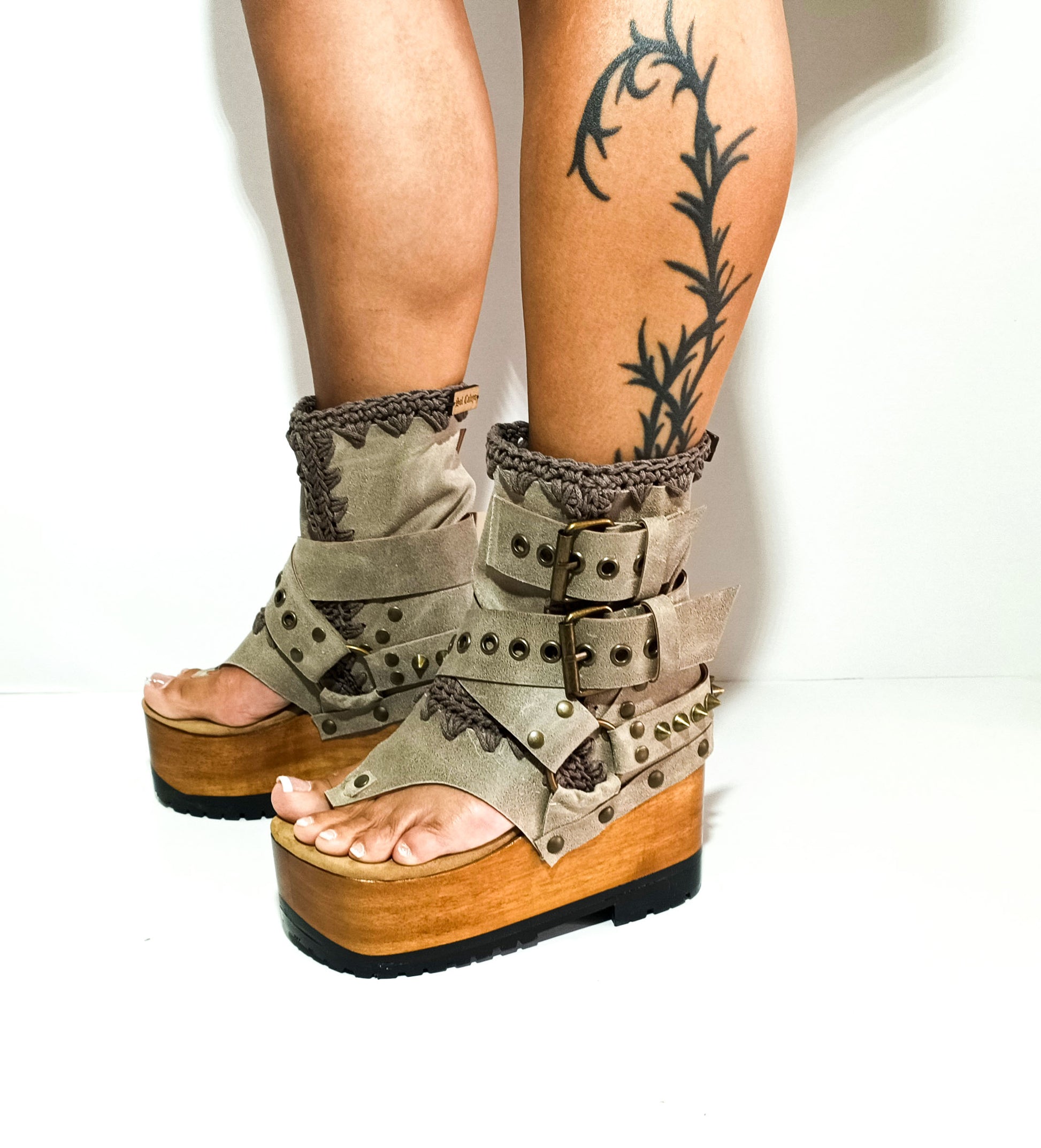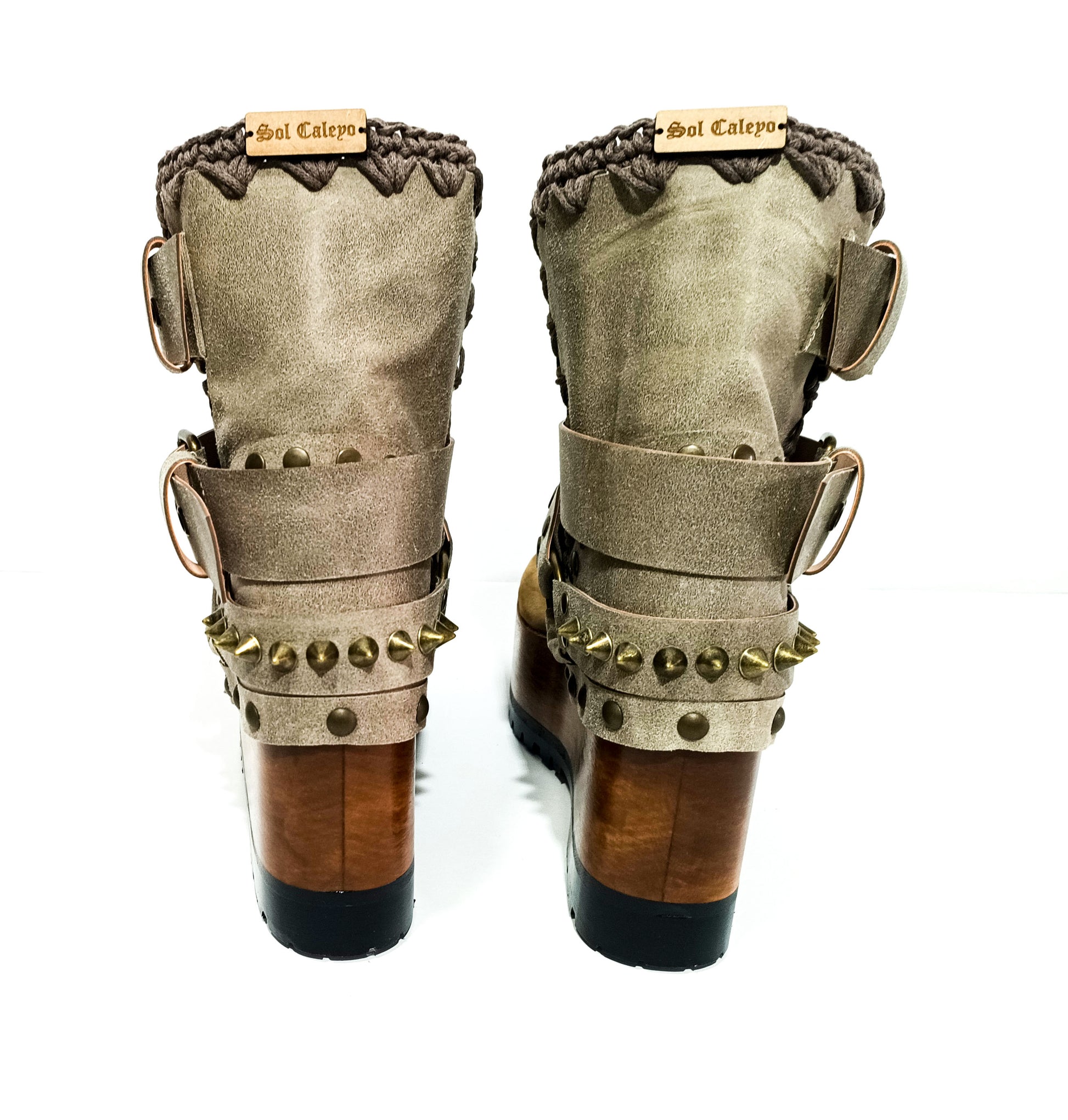 Decorative elements: The Kenia Boots are adorned with old gold pyramid studs and biker style buckles, which add an edgy touch to their overall design. These embellishments give the shoes a unique and eye-catching look.