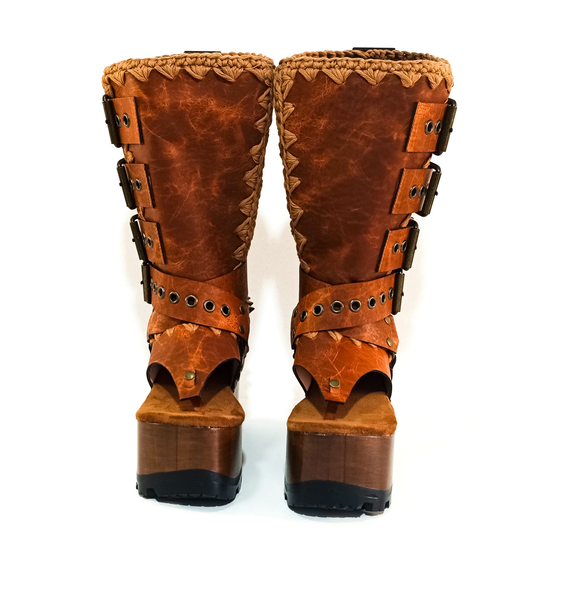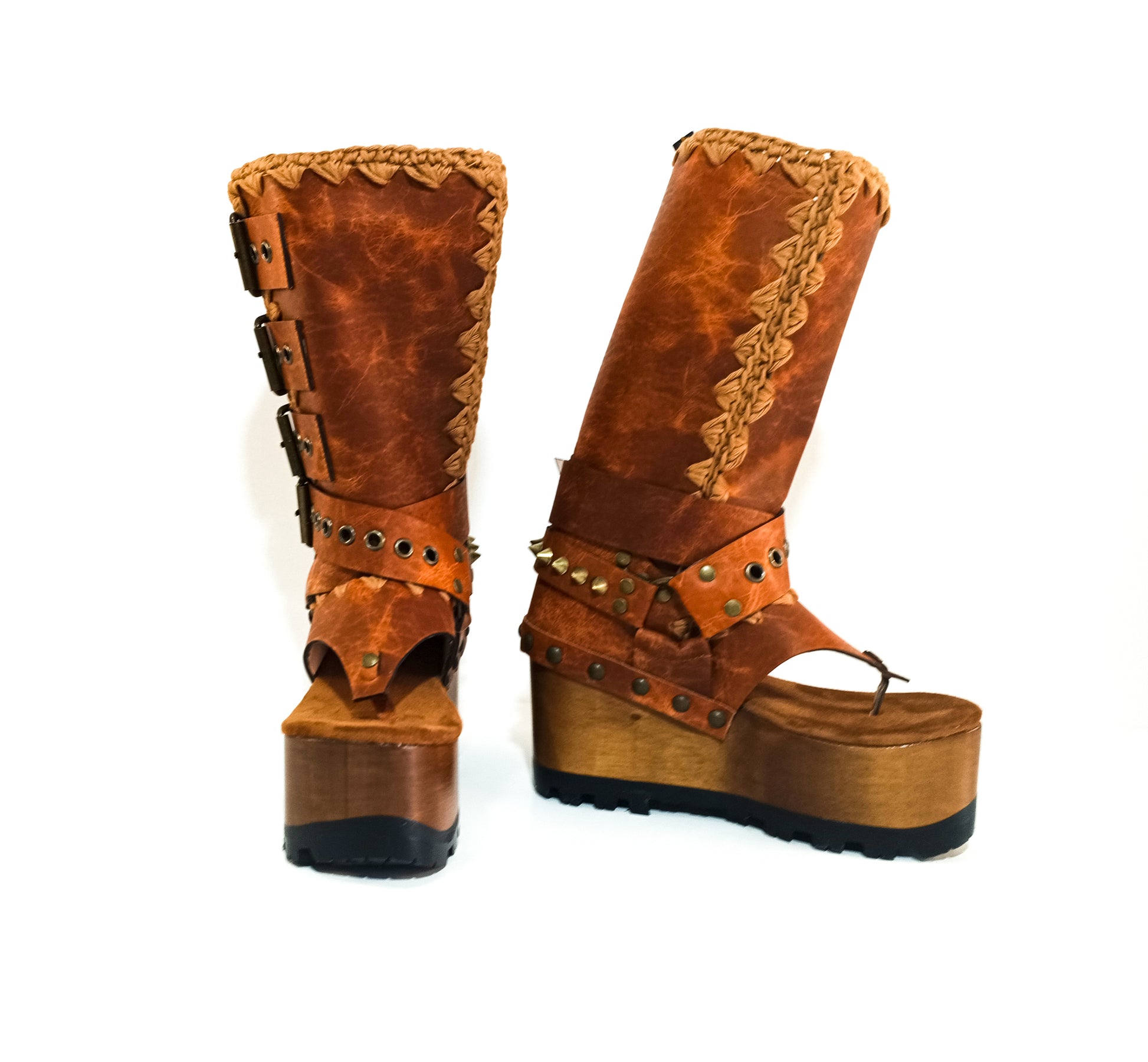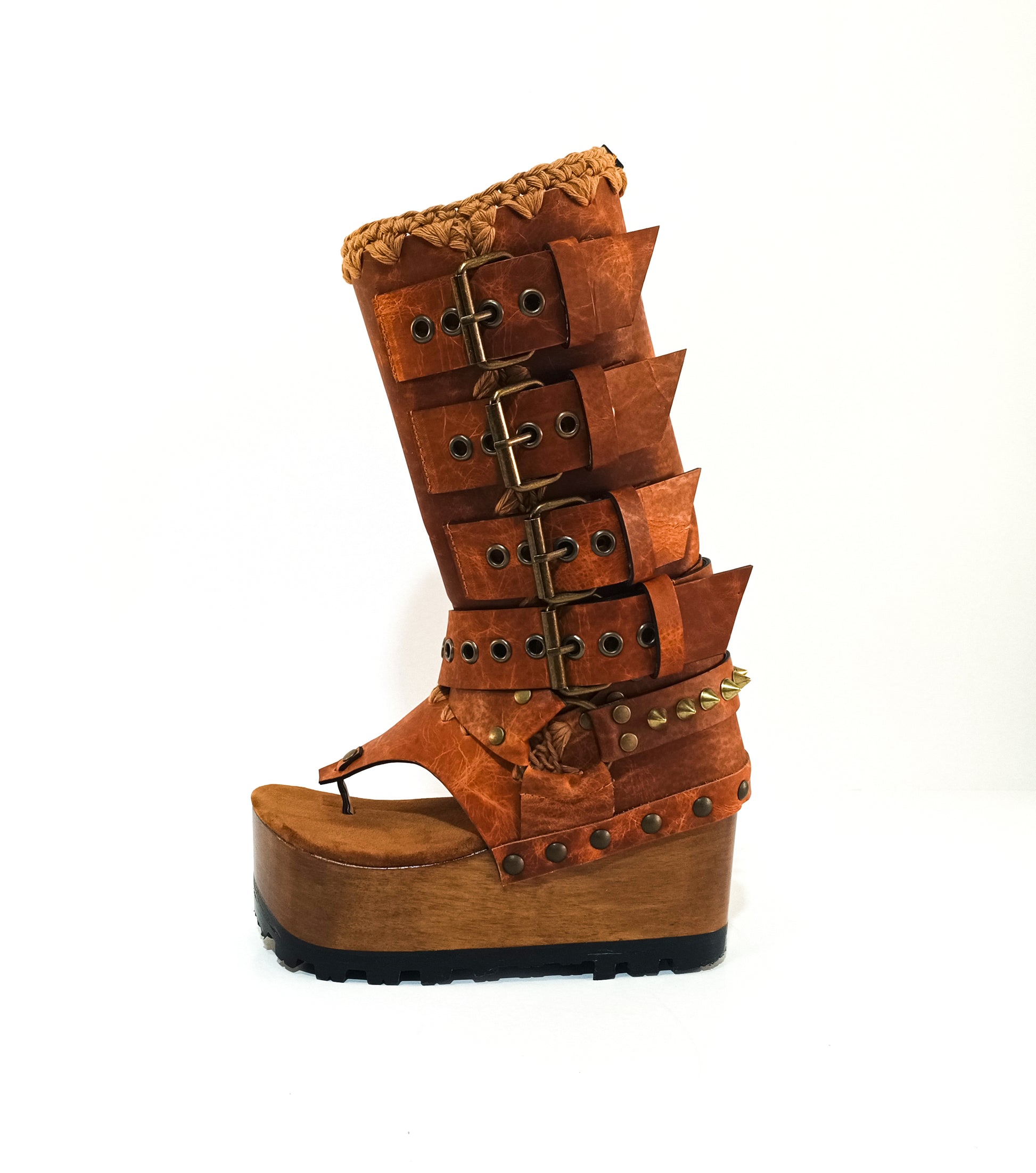 Style: flip-flop style platform sandals, meticulously handcrafted in genuine aged tan leather.
